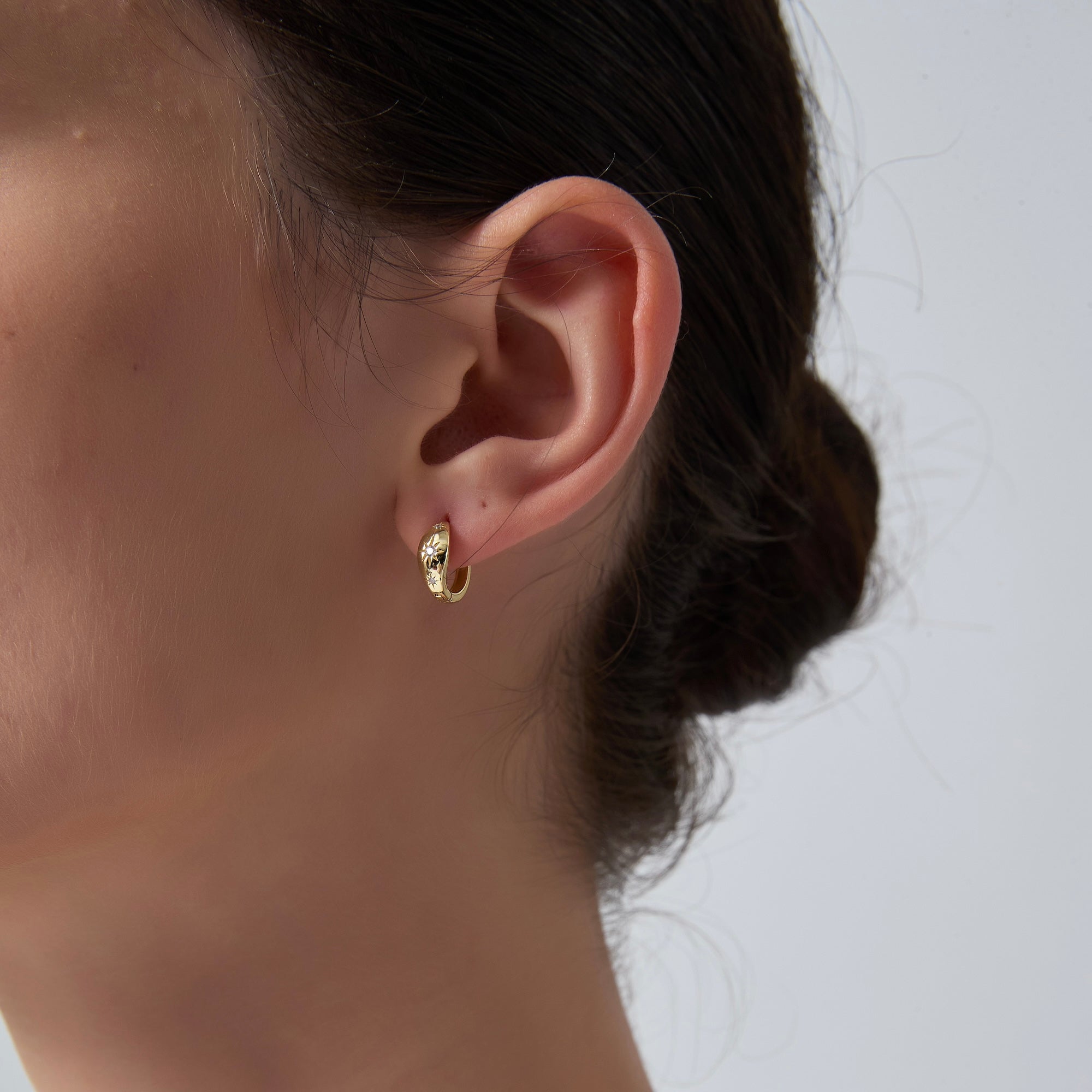 Boucles d'oreilles créoles Huggie en forme d'étoile à huit branches