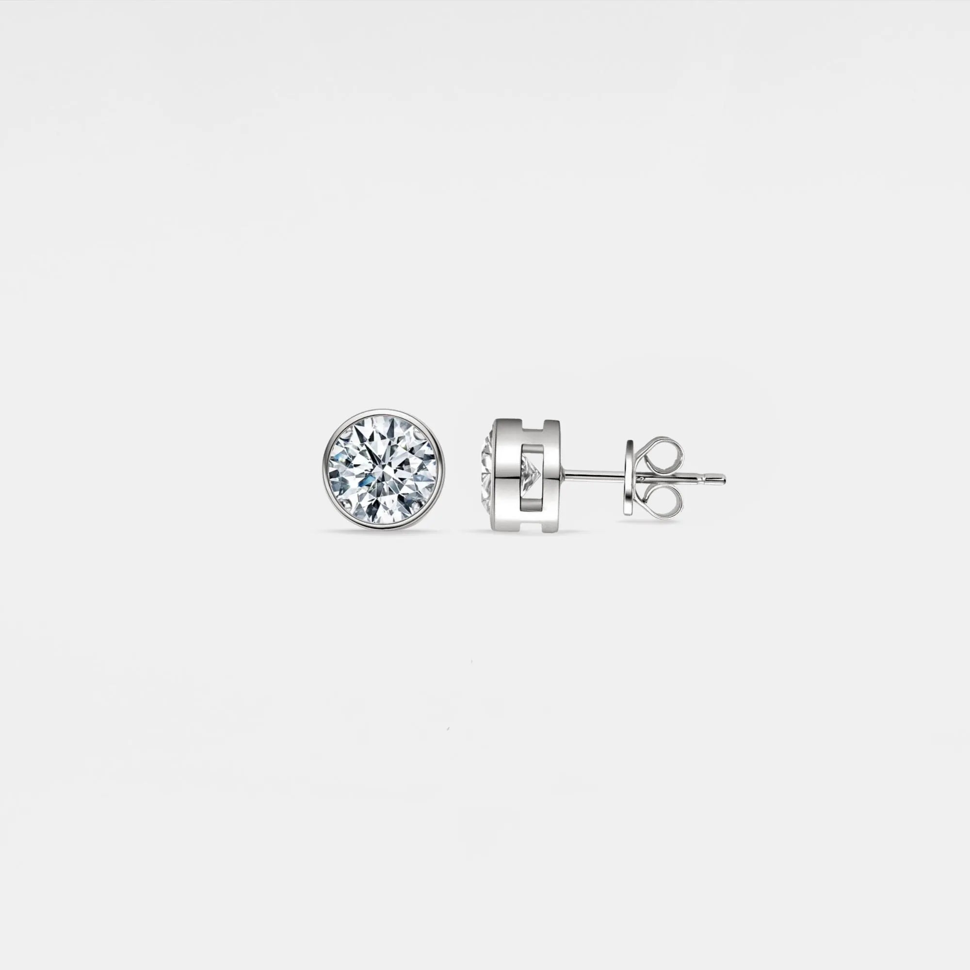 Boucles d'oreilles à tige en moissanite sertie d'une lunette ronde