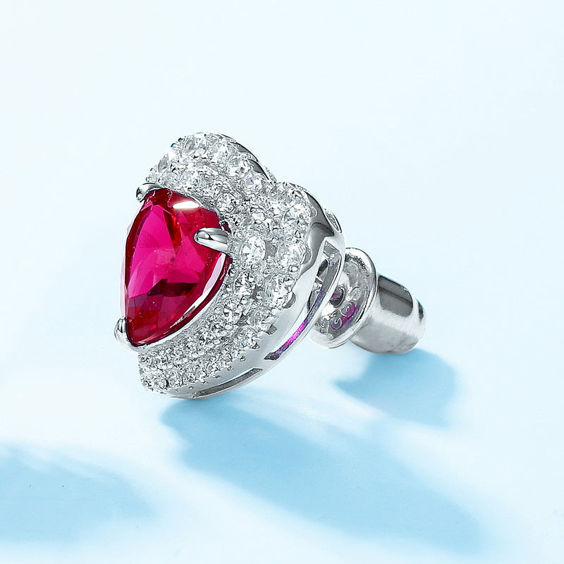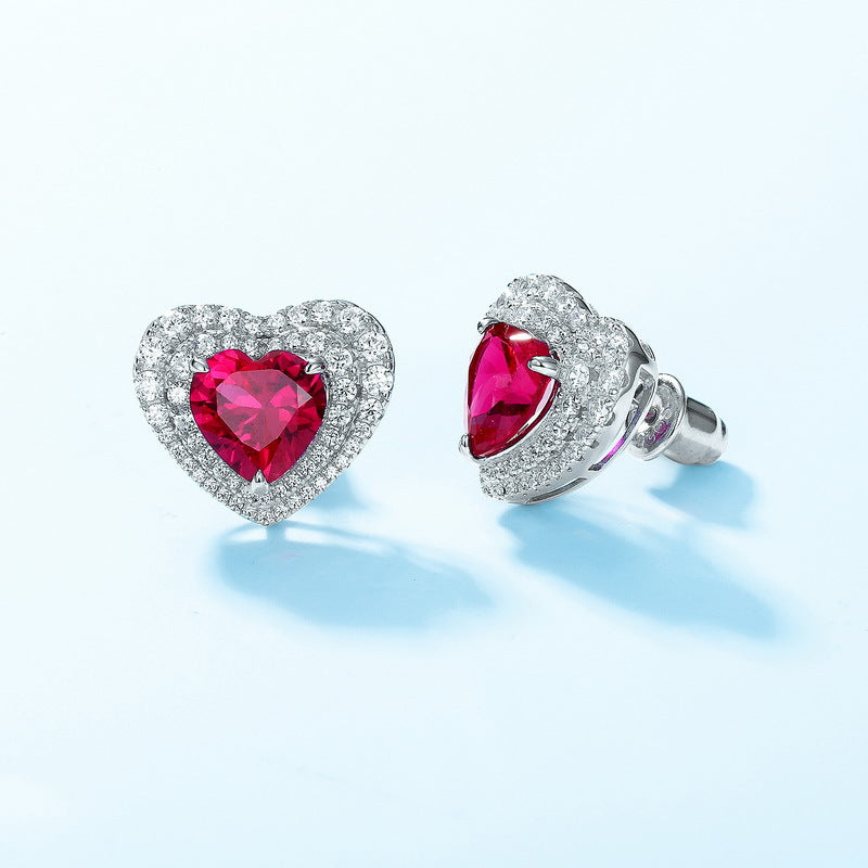 Boucles d'oreilles de mariage en forme de cœur avec halo de rubis
