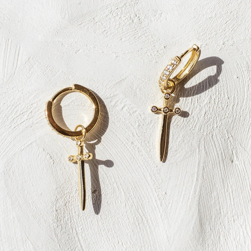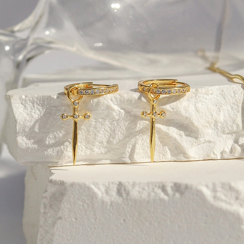 Orecchini a cerchio pendenti a goccia con spada pugnale