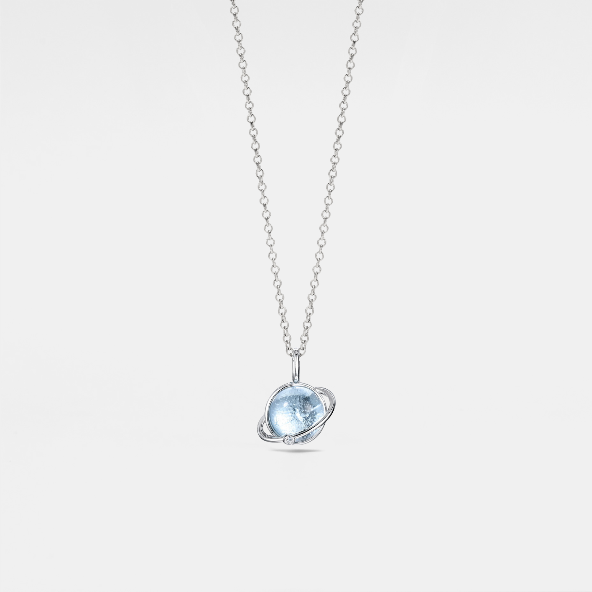 Collana con pendente pianeta Saturno in topazio blu