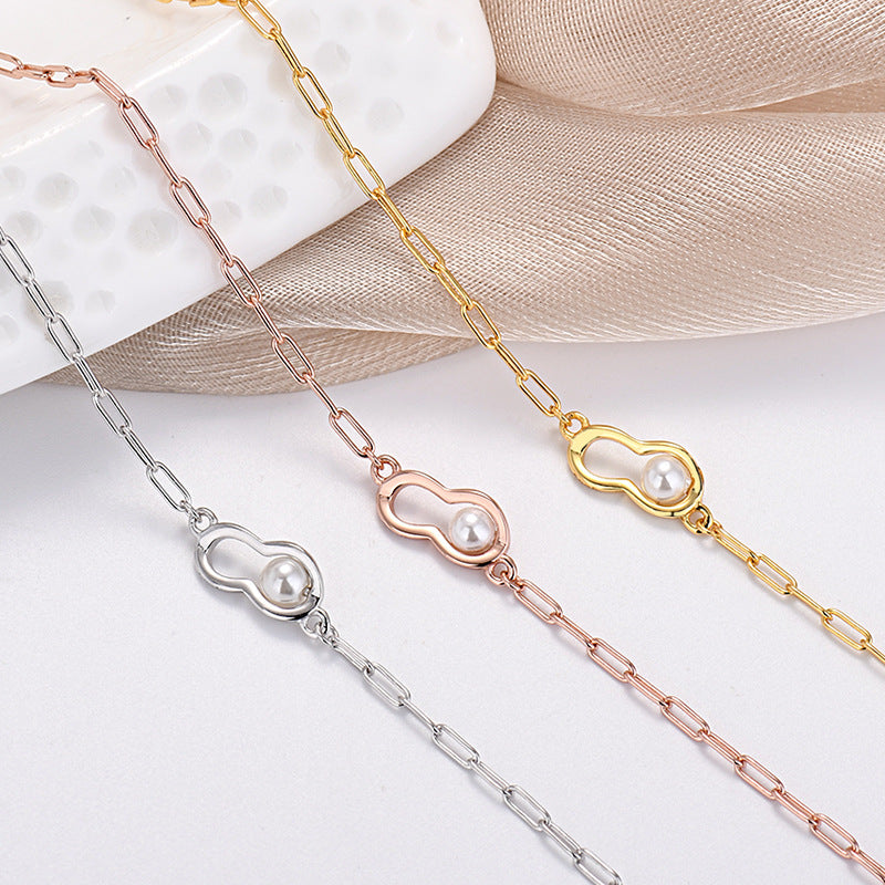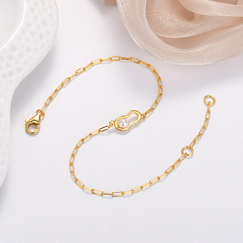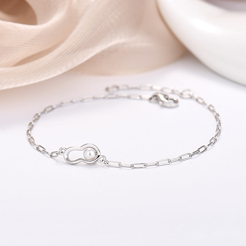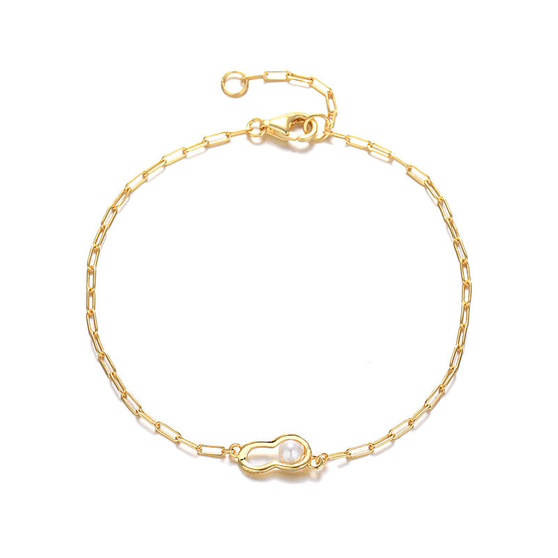 Pearl Peanut Charm Stacking Chain Bracelet