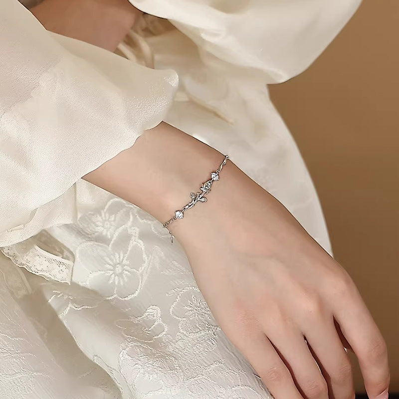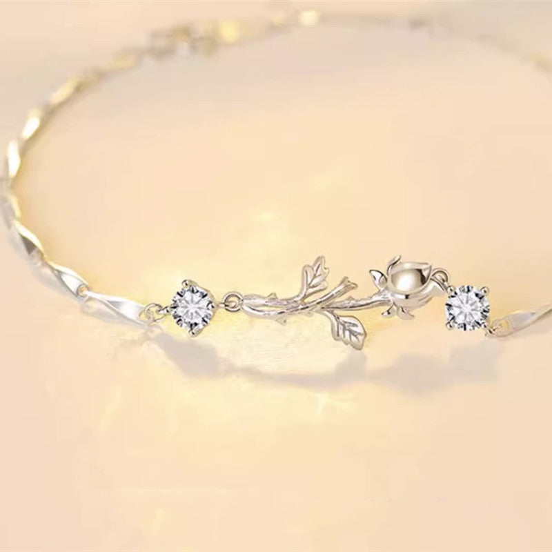 Dainty Rose Flower Charm Bracelet