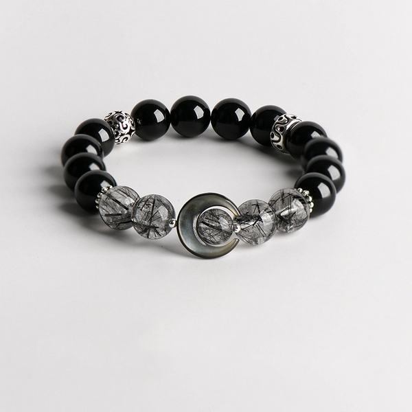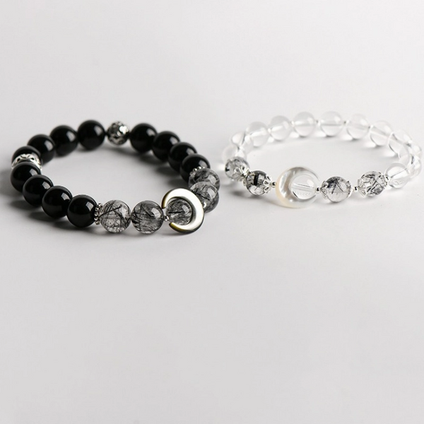 Obsidian Bead Moon Matching Couple Bracelet