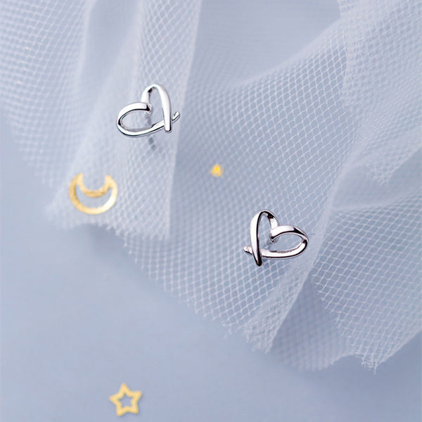 Tiny Small Gold Heart Ribbon Stud Earrings
