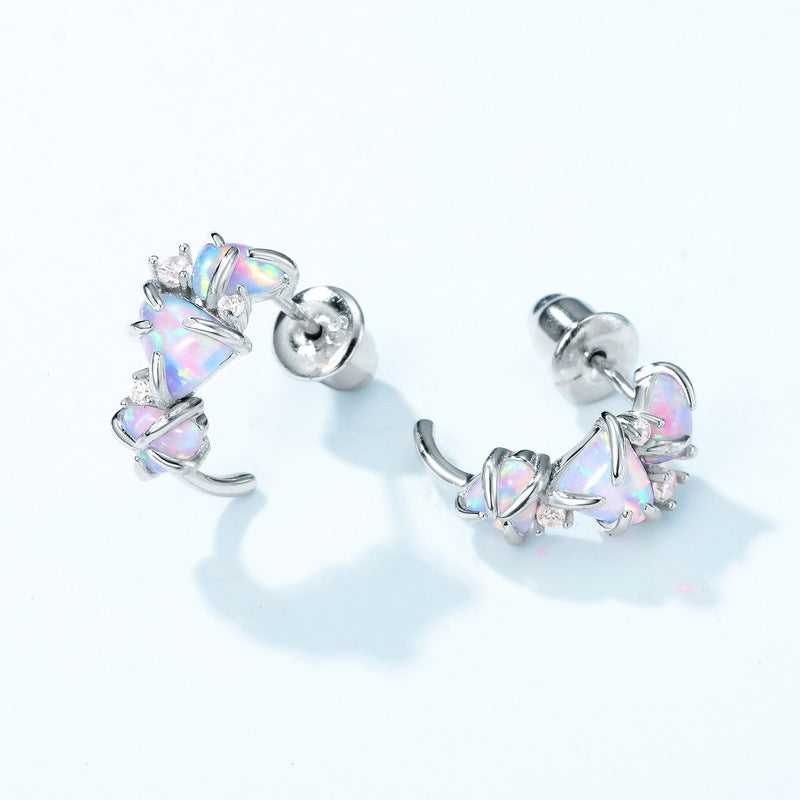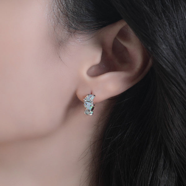 Three Stone Opal Half Hoop Earrings