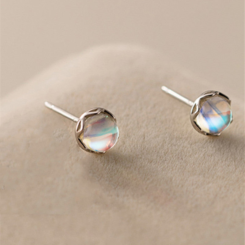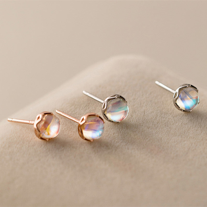 Tiny Small Round Moonstone Stud Earrings
