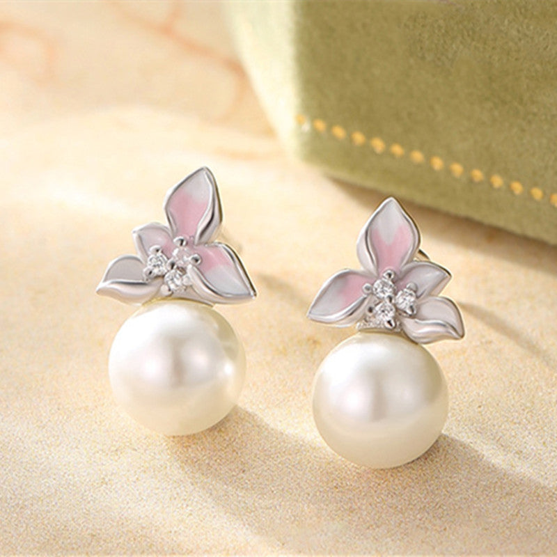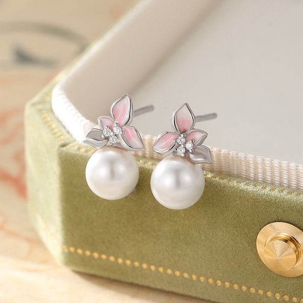 Pearl Magnolia Flower Wedding Stud Earrings