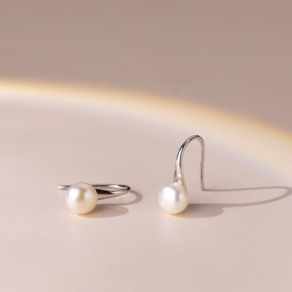 Minimalist Pearl Hook Earrings