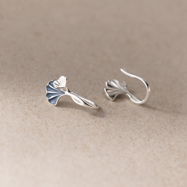 Dainty Silver Ginkgo Leaf Hook Earrings