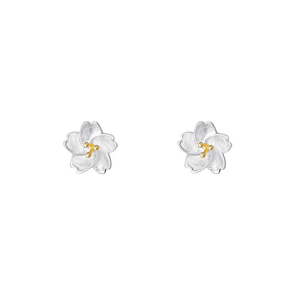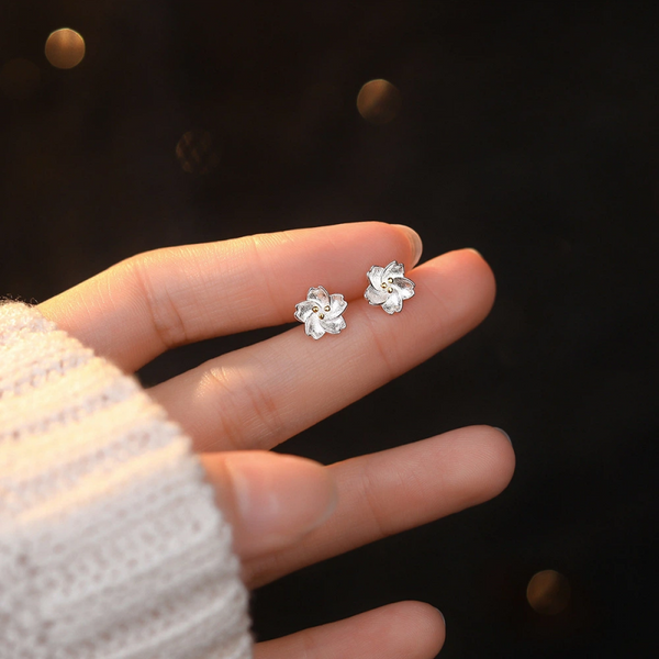 Silver Cherry Blossom Flower Stud Earrings