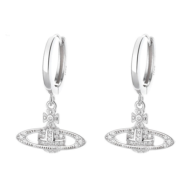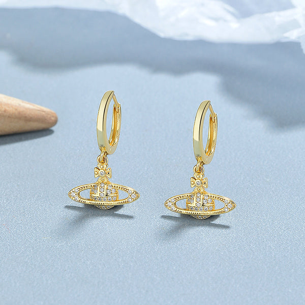 Planet Saturn Star Dangle Drop Hoop Earrings