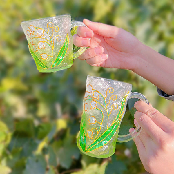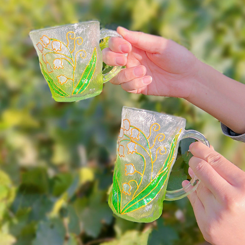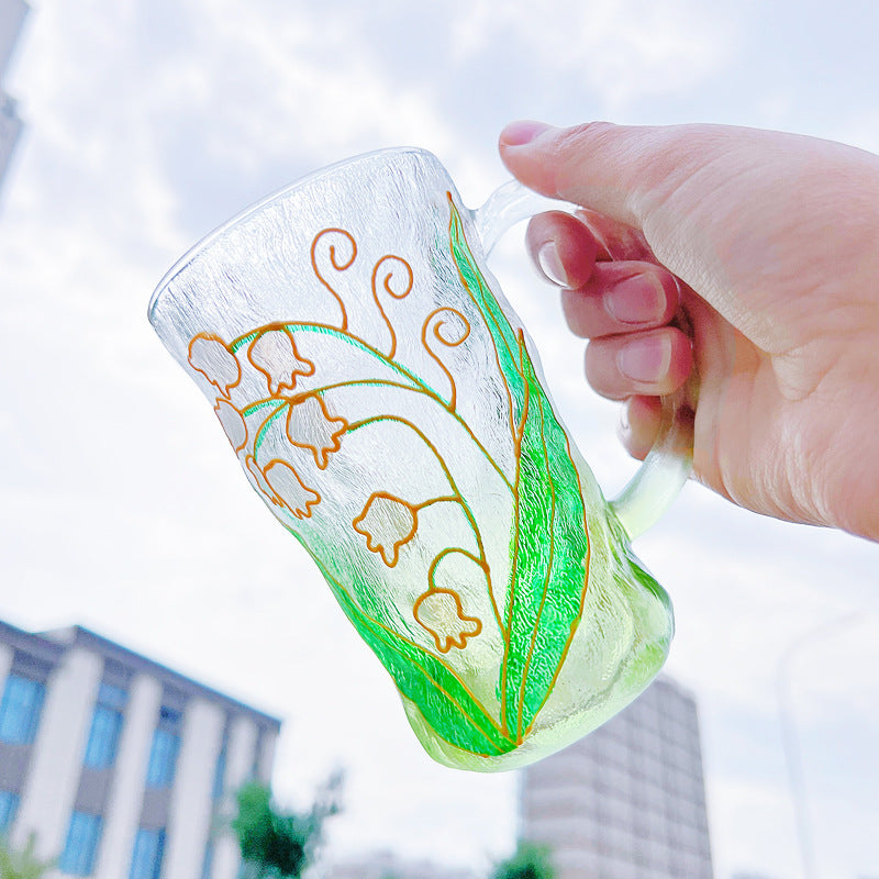 Hand-Paint Lily Of Valley Flower Glass Cup