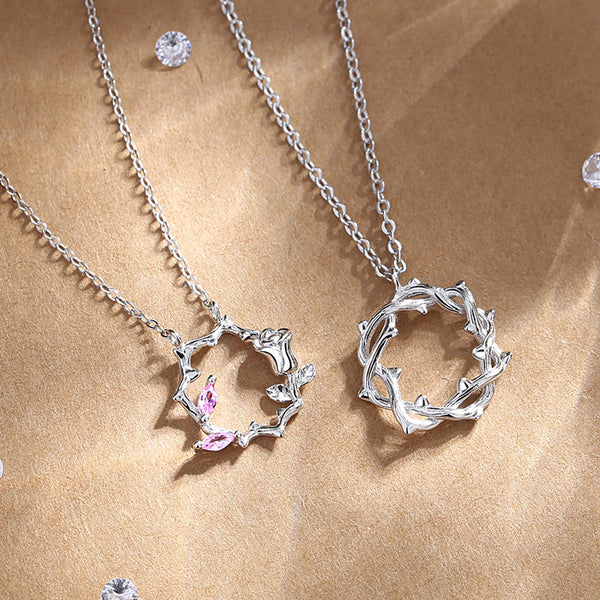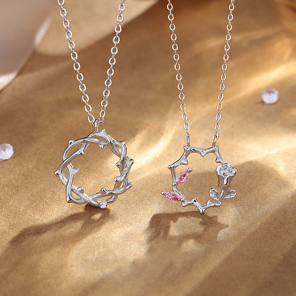 Pink Rose Flower Couple Matching Necklace
