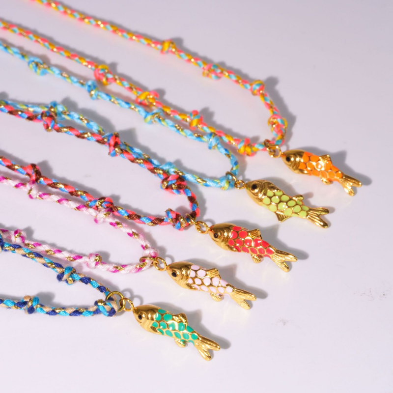 Dainty Fish Pendant Rope Necklace