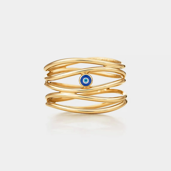 Evil Eye Nazar Ocean Wave Five Row Ring