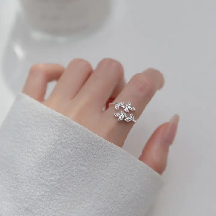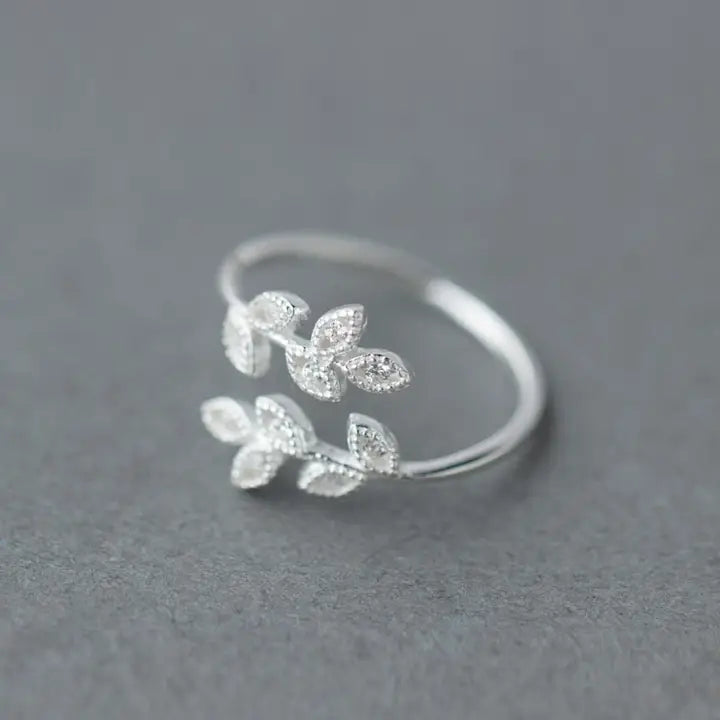 Olive Leaf Branch Bypass Stacking Ring