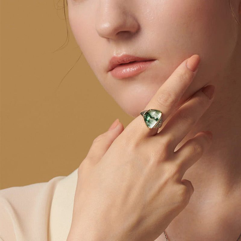 • Material: Solid 925 Sterling Silver ∙ Moss Agate