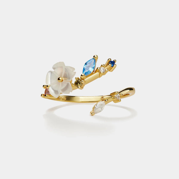 Mother of Pearl Flower Stacking Bypass Ring