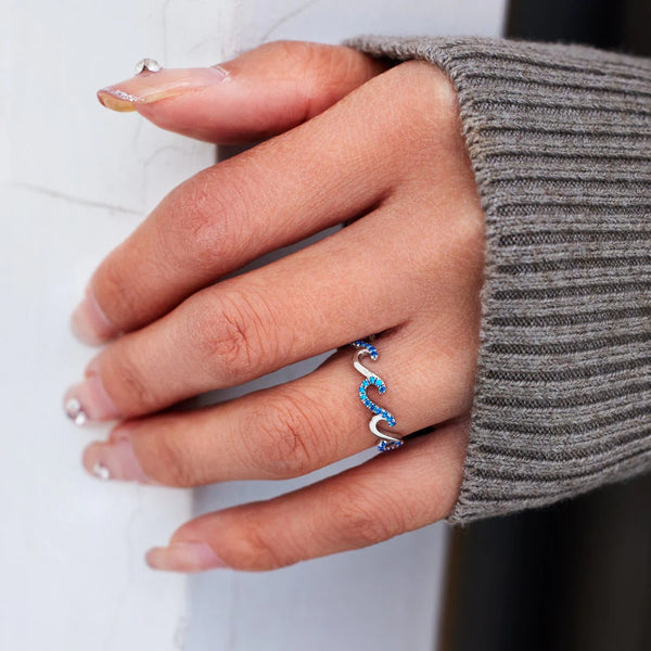 Inspired by the love of the natural world, the wave ring recalls the fluid lines of the undulating sea. Crafted from a single piece of metal into a timeless form. This dainty ring can be worn alone or stacked.