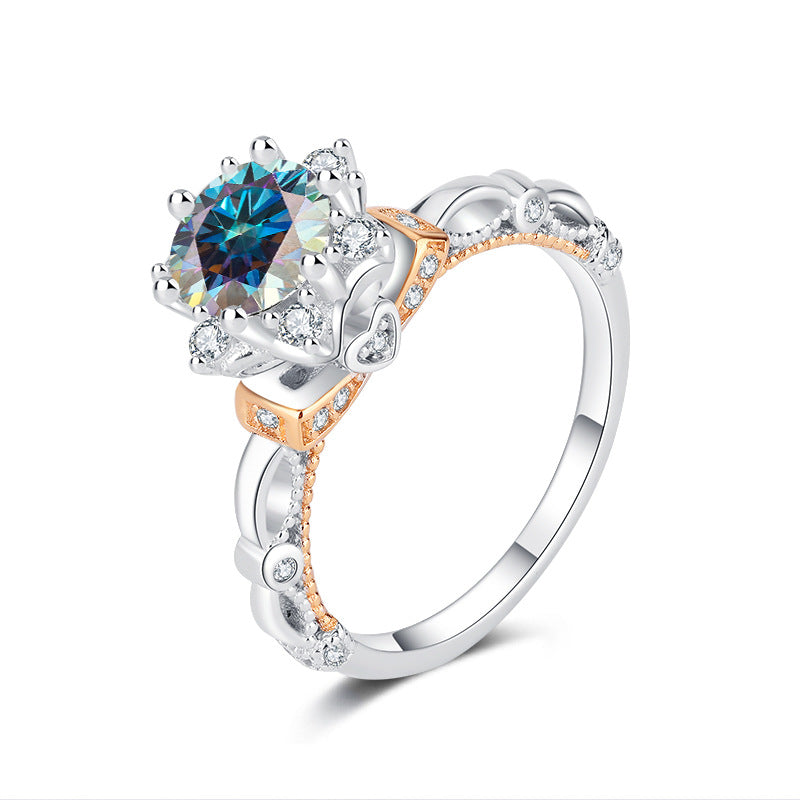 Color Moissanite Flower Halo Statement Ring