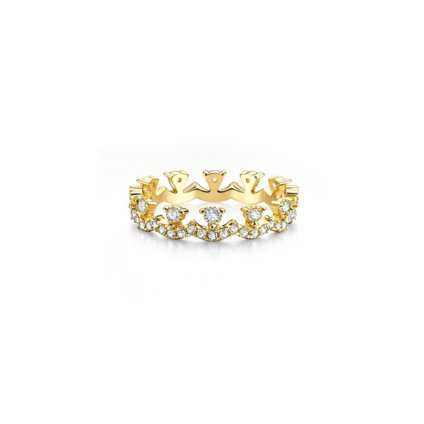 This gold-toned ring features a delicate crown design, with subtle open-work details and shimmering crystals. Lightweight and easy to wear, it’s perfect for stacking or solo use. Blending regal charm with modern simplicity, it adds a touch of refined glamour to daily looks—ideal for those who love understated elegance.