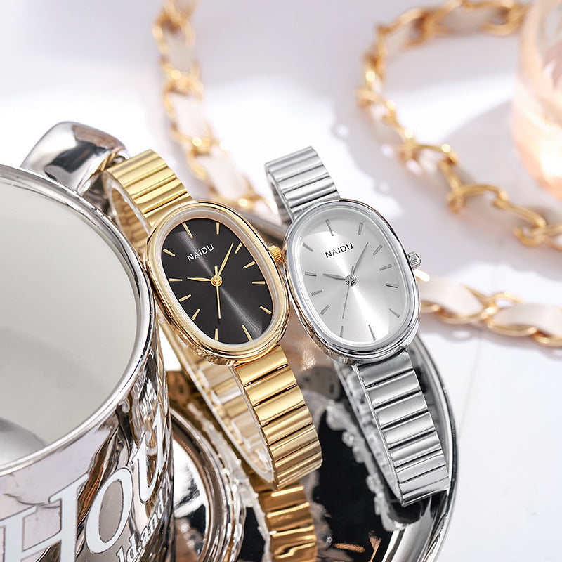 The watch has a classic style, with an oval dial design and a charming mother of shell that enhances its own style.  Perfect for any special occasion.